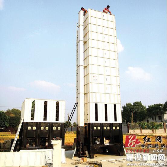 红网长沙县站10月28日讯(星沙时报记者 蒋志斌)“有了这两个大家伙,再也不怕下雨天粮食发霉了。”昨日,长沙县黄花镇回龙村永吉优质稻种植专业合作社负责人张文武,站在正在安装的粮食烘干机旁乐呵呵地说,烘干机不仅解决了稻谷晾晒场地不足的问题,还能省人工成本。张文武是长沙县有名的种粮大户,流转土地达3000多亩。之前的他,每年都会为晒粮发愁,“要不就是没地方晒,要不就是天公不作美突然下雨。”张文武说,今年的双抢时节正值雨水盛期,为抢种晚稻,他不得不冒雨收割早稻,然而连下5天雨加之又没地方晒,这些稻谷全部发芽,最后只得给人喂鱼。