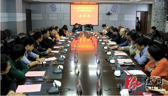 座谈会上,邓宗祥首先汇报了沅江的基本情况,全市辖16个乡镇场、街道办事处,总面积2177平方公里,总人口75万,境内河湖相通,呈“三分垸田三分洲,三分水面一分丘”地貌特征,素有“鱼米之乡”、“生态水城”的美称。近年来,沅江大力实施工业强市、城乡统筹、绿色发展战略,扎实推进新型工业化、新型城镇化、新农村建设及社会民生建设,市域经济保持平稳增长的良好态势。今年,总投资55.5亿元的104个重点项目全面铺开,高新区启动17个重点项目建设,船舶产业园8个项目顺利推进。芦笋产业已发展加工企业6家,开发7大系列产品,合同销量近6000吨,预计年产值过5亿元。全市预计实现规模工业总产值140.06亿元,规模工业增加值38.59亿元,同比增长7.7℅、11.9℅。城镇建设步伐加快,目前城镇化率为46.24℅,中心城区建成区面积14平方公里,人口20万。同时,农业农村稳步发展,全市收获早稻24.7万吨,落实晚稻面积62万亩;林业生产持续增长,“绿色通道”、“秀美村庄”、“十万树木进村镇”等活动全面开展,全市共完成造林7万亩,栽植各类苗木370多万株;人民生活持续改善,城镇、农村居民人均可支配收入分别为22050元、11771元。