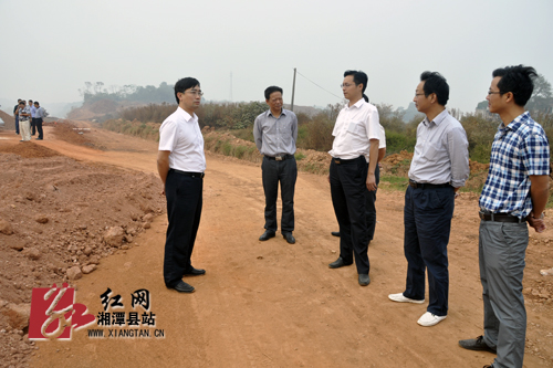 县委书记谢振华(左一)一行视察天易公路二期项目。