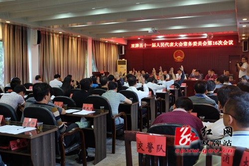 红网双牌站10月29日讯(通讯员 何恒)10月28日上午,双牌县十一届人大常委会第十六次会议在县人大常委会会议室举行。县人大常委会主任唐冬华,副主任袁小爱、邓美英、邓明义、吕保和、姜国文出席会议。县委副书记、县长魏和胜,县委常委、统战部长、副县长李长于,副县长秦勃及法检两院主要负责人列席会议。会议听取并审议通过县人民政府关于G207线异蛇山庄至双牌工业园段路基路面加宽和增加财政预算的议案;听取并审议通过县人民政府关于代表议案、建议、批评、意见办理情况的报告;听取并审议通过县人民政府关于城乡规划法执法检查后续整改情况报告,学习了习近平总书记在庆祝全国人民代表大会成立60周年大会上的讲话。
