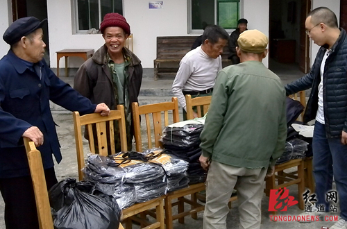 (老人们看着送来的衣服笑得合不拢嘴)