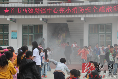 红网吉首站11月6日讯(通讯员 邓小玲 张黎明)“捂住口鼻!”“往这边走,低头!”11月4日,吉首市马颈坳小学在“基金减灾小课堂”中,开展消防安全疏散应急演练。下午14点30分,随着校园内警报声的响起,黄烟的弥漫。各班班主任迅速带领学生弯着腰、用手帕捂住口鼻,沿指定疏散通道有序撤离到学校操场。演练共用时2分05秒,500多名师生全部安全疏散完毕。