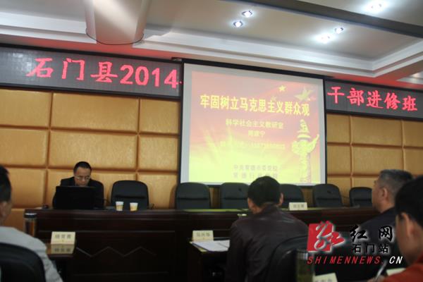 红网石门站11月7日讯(通讯员 梁娟 舟子)11月4日上午,常德市委党校科学社会主义教研室周建宁老师受邀,为石门县2014年第二期科干班的学员讲授《牢固树立马克思主义群众观》。