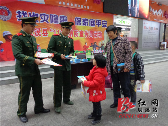 红网辰溪站11月11日讯(通讯员 滕雨青)11月9日,辰溪县消防大队在县城和火马冲集镇,同时开展“119消防宣传日”活动。在县城,消防宣传车沿街行驶宣传消防知识,消防官兵则在主街道人流量密集地设置宣传咨询台和发放宣传资料,向过往民众宣传消防安全知识。当天是火马冲镇赶集日,消防官兵和镇干部在集镇主干街道上设置宣传咨询台,向过往农村群众发放宣传资料;消防官兵还为火马冲的志愿消防队员上了一堂生动的消防课。