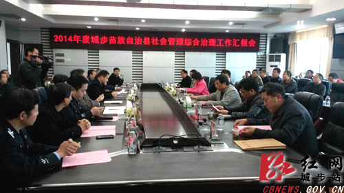 会议由县委副书记蔡灿辉主持。会上,县委常委、政法委书记钟胤进作工作情况汇报。今年来,城步社会管理综合治理工作在县委、县政府的正确领导下,在市综治委的具体指导下,紧紧围绕“打造平安城步、建设和谐苗乡”的总体思路,以努力实现“两保”、“两创”为工作目标(即保持省综治先进县、省无毒害县、市平安县,保持全县大局稳定,争创省安全生产先进县、三年内争创省平安县,综治民调确保进入全省前60名,力争进入全省第一方阵),不断创新社会治理方式,纵深推进平安创建工作,全县社会大局和谐稳定,民族融合团结进步,社会管理综合治理工作有了新的进步和长足发展。县委县政府高屋建瓴,顶层谋划落实到位;基层基础不断加强,服务管理逐步规范;严打整治常抓不懈,社会治安持续向好。