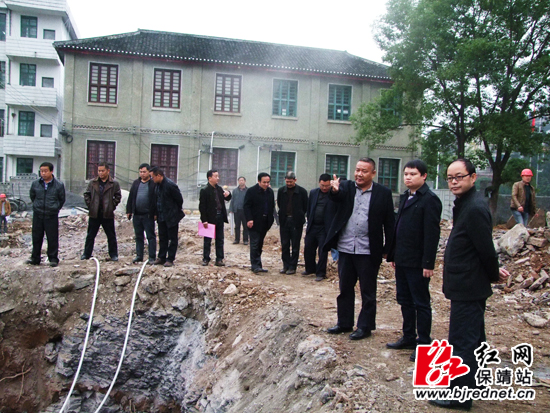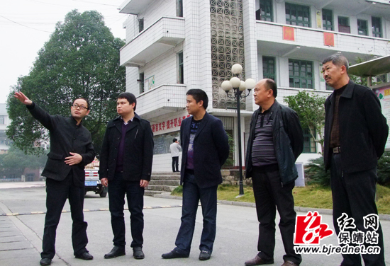 保靖县委常委、副县长阳文魁(右二)在保靖民族中学察看建设现场