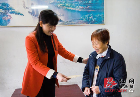 当天,贺晓还看望了柳树湾社区居民瞿建华。据了解,瞿建华于2012年被评为“感动辰溪十佳巾帼道德模范”,体弱多病的她照顾丧失劳动能力的丈夫几十年。贺晓此行为他们送去了慰问金,并鼓励他们要坚强的生活、乐观的生活。