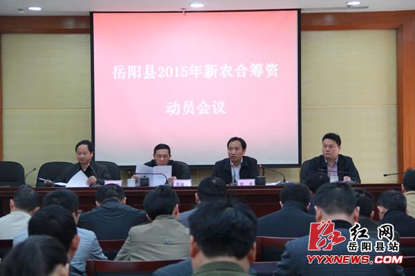 会议学习了《岳阳县2015年新型农村合作医疗实施方案》。岳阳县新农合自2006年实施以来,参合率由当年的63.1%上升到2014年的99.6%。2015年,新农合农民个人缴费为每人每年90元。12月20日为2015年度全县农民参合缴费截止时间。