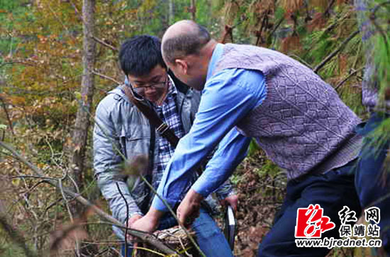 11月20日早上八点,保靖县检察院三名干警电话联系保靖县林业局资源管理股干部,一行10人到群众举报的保靖县普戎镇三山村滥伐林木现场,进行材积测量和现场鉴定。
