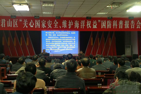 红网君山站11月26日讯(分站记者 王琼 洪伟)11月25日,岳阳市君山区委中心组第八次集体(扩大)学习暨君山区“关心国家安全、维护海洋权益”国防科普报告会举行。区委副书记、区长谢胜及全体在家区级领导,各镇(办)场、区直各单位主要负责人、专武干部,基干民兵,师生代表,假日读书班学员等参加。会议由区委副书记、区国教委主任卢宗仁主持。会议特邀国家国防科普报告团专家李杰教授以《海上安全形势及对策思考》为题进行专题辅导。