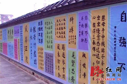 11月26日,记者走在临湘市长五路人民医院路段,书香之气扑面而来。在这里,普通的砖墙成了文明和谐文化的“新阵地”,一幅幅书画作品组成了近两百米的文化长廊,内容丰富,新颖别致,吸引众多市民和过往行人驻足观看,成为我市城区一道亮丽风景线。从临湘全市环保杯、职工书画比赛、农民书画展等多次书画比赛挑选出来的优秀作品组成这个文化长廊,几乎囊括了全市具有较高水平的书画作品。软笔、硬笔书法,水墨、素描等绘画,这些作品汇聚一起,既是展现美的一种方式,也对提升临湘市文化水平起着重要作用。