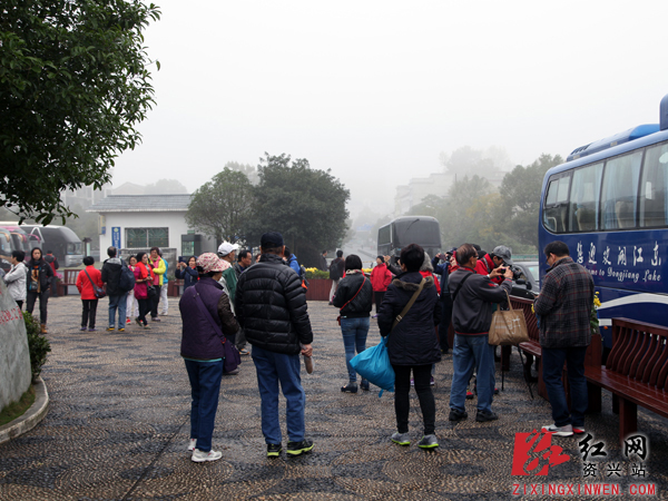 红网资兴站30日讯(分站记者 朱孝荣)11月29日上午,游客们在东江湖景区游客接待中心拍照、候车。虽然阴雨绵绵,而且已是隆冬时节,但游客们向往东江湖的热度不减。来自广州的李先生告诉笔者,趁着周末,他带了10多名亲朋好友特意来感受冬季东江湖特别的美。李先生说,这已是他今年第三次来东江湖了。