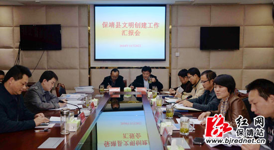 下午召开的文明创建工作汇报会由尹海霞主持。会上,调研组对保靖县文明创建工作情况作了详细的分析,并就如何进行一步做好文明创建工作提出了意见和建议。田勇对保靖县文明创建工作情况表示肯定,希望大家在文明创建工作中要树立时间常态化、地点固定化,营造良好氛围、人人参与到文明创建工作中,要有创新,做好文明创建自愿服务工作。