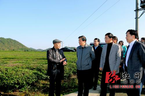 岳阳市政协主席赖社光(左二)一行在临湘市明伦茶园