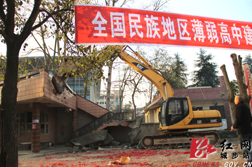 红网城步站12月2日讯(记者 肖丁勤)12月2日上午8点,在隆隆的鞭炮声中,全国少数民族地区薄弱高中建设项目城步一中二期工程正式开工。县委常委、统战部长、副县长、项目建设指挥部指挥长杨锡英出席,常务副指挥长王安伯宣布工程开工。