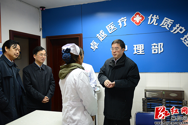杨青一行实地查看了兰里镇中心卫生院、县人民医院,查看了医院建设、处方药品管理、医疗台账运行等情况,并与基层卫生管理人员、新农合医务工作者等进行交谈,了解医院实情、合作医疗制度实施、新农合补偿支付体系开展情况以及取得的成效和存在的问题,对我县新农合工作进行了全方位了解。