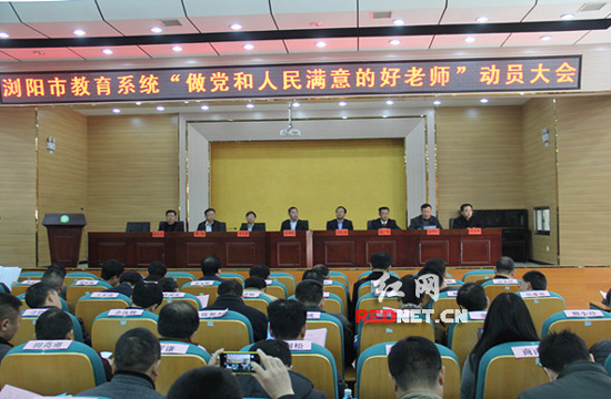 (浏阳市“做党和人民满意的好老师”动员大会现场。)
