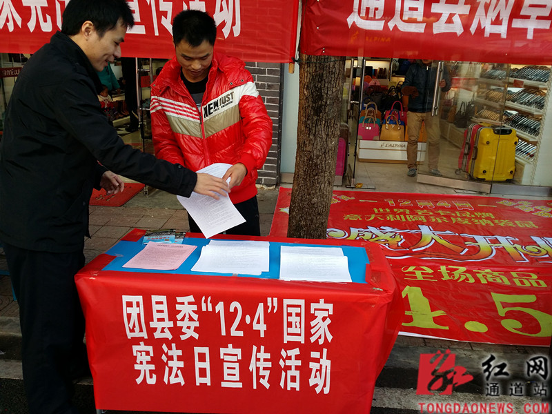 (12月4日上午,通道团县委在通道商贸广场开展国家宪法日宣传活动。)