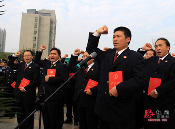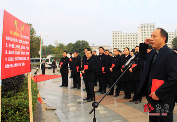 红网衡南站12月4日讯(通讯员 陆元连 陆昕)值首个国家宪法日暨第十四个法制宣传日之际,12月4日上午9点,衡南县人大常委会组织该县公检法司等部门的干部职工在县城黄金路花园广场举行宪法宣誓及法制宣传活动,旨在督促全县干部群众弘扬宪法精神,恪守宪法原则,履行宪法使命,迅速形成学习、宣传、实践宪法的良好氛围。