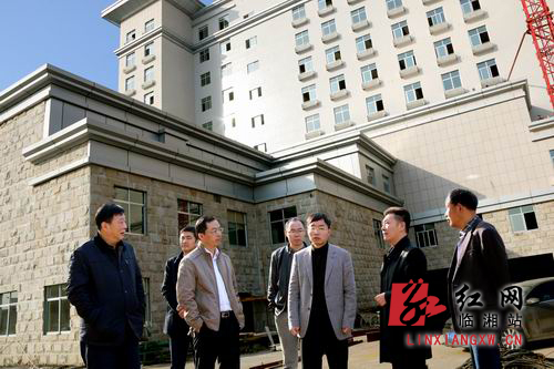 临湘市委书记黄俊钧(中)一行视察在建中的审判大楼