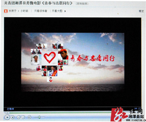 红网湘潭县站12月4日讯(分站记者 齐骏)12月3日,湘潭县团县委发布微电影《青春与志愿同行》。这部微电影记录了我县青年志愿者的风采,宣扬了青年志愿者的良好风貌和乐于助人的精神,从而鼓励更多的青年人加入到志愿者行列中来。