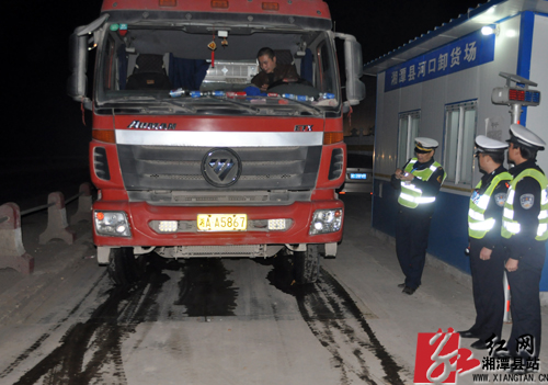 “没想到现在湘潭县治超这么严。”原来,该货车司机是从湘乡将货物运到湘潭,想趁着黑夜蒙混过关,但最终还是被执法人员拦截了下来。