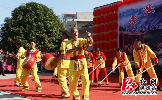 保靖县副县长胡勤在致辞中指出此次演出对促进保靖县和秀山县民族团结和经济发展具有重要意义,号召两县人民共同携手,共同打造“边界民族经济文化圈”,逐步实现“经济共同发展,文化同传承、群众共和谐”的目标而奋斗。