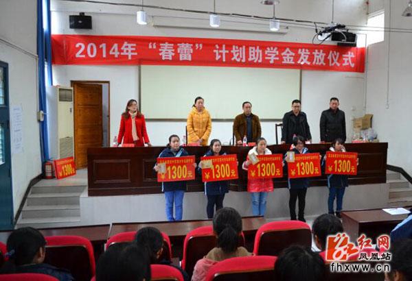 红网凤凰站12月11日讯(通讯员 田欢)12月10日,严冬临近,在凤凰县高级中学多媒体教室内却是暖意浓浓,由该县妇联组织的2014年“春蕾计划”助学金发放仪式在此举行。仪式上,该校共40名贫困获得助学金,共计52000元。