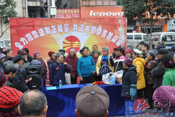 红网吉首站12月14日讯(通讯员 邱琳)12月12日上午,在吉首市峒河街头,由市法治办牵头、吉首市司法局主办以“全力凝聚法治正能量·共谱中国梦吉首篇章”为主题的着法制文化宣传活动吸引了不少群众关注。特色的活动宣传用“唱、写、答、问、送”五种形式为市民带来了一场丰盛的法制宣传大餐。来自丹青的苗歌王陈千钧和两位来自排吼、太平的女歌王以苗歌唱“法”,高唱宪法精神凝心聚力。来自寨阳乡的农民书法家挥笔泼墨,书写“弘扬法治精神,促进社会和谐”大好形势。