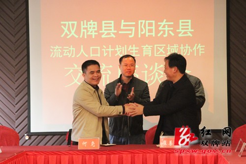 阳东县卫计局与双牌县计生委负责人现场签订区域协作协议