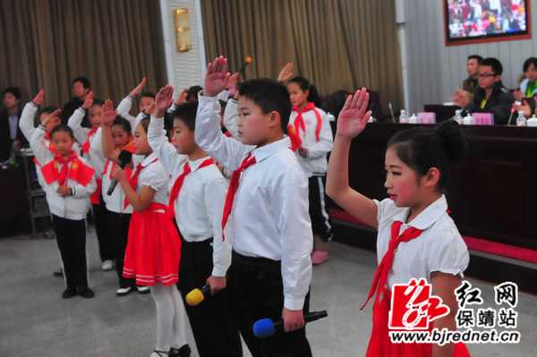 少先队员青春的脸庞闪动着,青春的气息洋溢着。上午8时30分,大会在国歌声中开幕,4名少先队员代表向大会献辞。孩子们用纯真稚嫩的声音抒发了对梦想的追逐,对梦想的渴望。