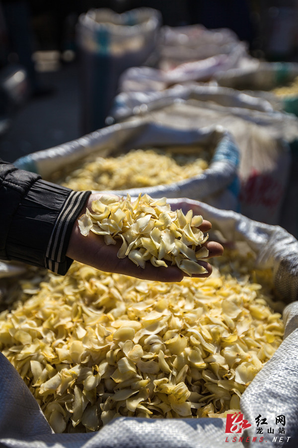 12月20日,龙山县洗洛乡百合市场,在等待销售的百合干片。
