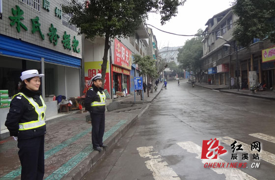辰溪交警在街上执勤,确保会议期间道路交通安全畅通