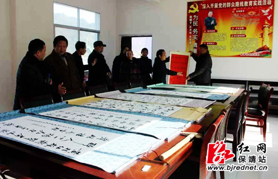 红网保靖站12月23日讯(通讯员 贾昶)近期,保靖县诗词学会组织爱好诗联的退休干部,深入基层采风,以实际行动践行习总书记在文艺工作座谈会上的讲话精神。他们先后深入到保靖县内的碗米坡、普戎、水田河等乡镇,在生活一线感受体验现实生活,力争创作出有筋骨、有道德、有热度的诗联作品。他们下到村组,与村民及村组干部面对面交流。12月20日,部分老干部来到凤滩电站库区移民村——碗米坡镇驼背村,了解民情、感受移民新村的变化,现场创作。并把诗联制作成书法作品赠送给村委办公室。来源:红网