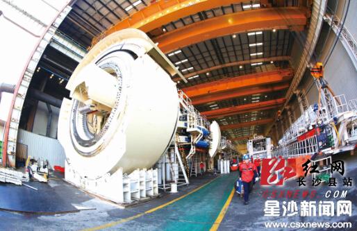 在长沙经开区,由中国铁建重工集团依托国家863、973计划自主研发的国产首台大直径全断面硬岩隧道掘进机(TBM)即将下线,预计明年春节期间始发。 曾诗怡 摄