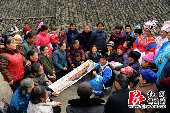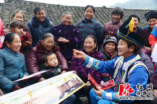 12月23日,彭运敏与普戎镇乡亲们分享北京领奖合影 张承印 摄