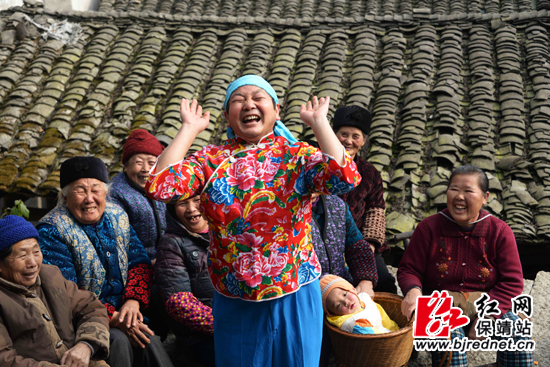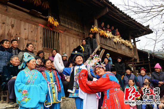 12月23日,彭运敏与徒弟们一同表演地方传统戏种 张承印 摄