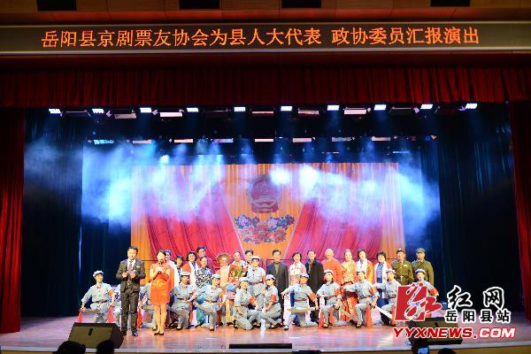 红网岳阳县站12月26日讯(分站记者 许伟军)为表达对岳阳县人大代表、县政协委员的祟高敬意。12月24日晚,岳阳县京剧票友协会精心准备的一台既有传统特色、又具有时代气息的京剧演唱会在县花鼓戏传承剧院浓情上演,本次晚会由县文广新局举办,县京剧票友协会承办,晚会特邀请了市老年大学京剧班及汨罗市京剧票友协会的票友们前来友情演出。