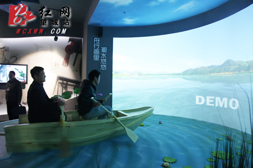 代表、委员们亲身体验3D感应靖港泛舟寻古。(姚泽子 摄)
