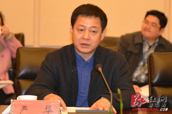 市委常委、组织部长、统战部长严华主持汇报会。