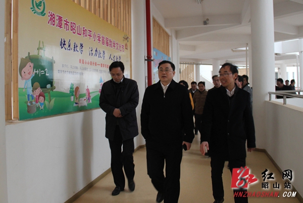 在昭山和平小学,考察团详细了解学校的招生、班级开设等情况,并到教室操作多媒体教学设备。他们对学校优美的校园环境,一流的教学设施称赞不已。