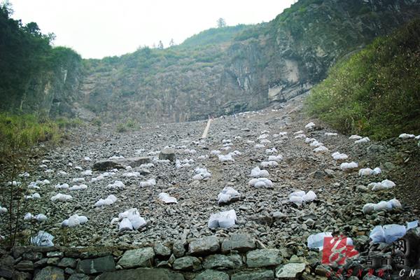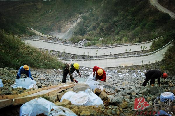 截止目前,经过400余劳动力连续作业,已在乱石堆中砌起1300余个造林大穴。造林用苗和播洒草种也已准备就绪,将选择有利天气陆续定植14000余株苗木,工程将于春节前完成。