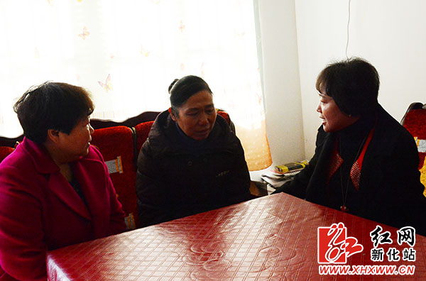 新化县委常委、宣传部长李劲柳叮嘱杨建一妻子要保证身体,照顾好家庭