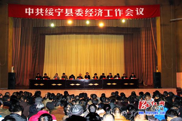 红网绥宁站1月21日讯(分站记者 向云峰)1月21日,2015年绥宁县委经济工作会议在县影剧院召开。会议全面总结了2014年全县经济社会发展情况,提出了今年工作的总体要求和预期目标,安排部署了2015年全县经济工作。会议动员全县上下把握新常态,推进新发展,努力保持经济平稳健康运行和社会和谐稳定。