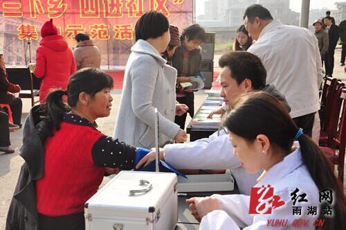 红网雨湖站1月23日讯(分站记者 谢岳峰) 在这个温暖的冬天,1月22日,雨湖区2015年首场“三下乡,四进社区”集中示范活动在长城乡和平村正式启动。精彩的文艺演出和丰富多彩的惠农服务活动温暖着老百姓的心,在有力推动农民科技文化水平的同时,为新农村建设增添了新的生机与活力。