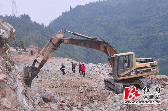 2014年10月15日,正在修建的河边村沿河路,连起了清水和花垣赶秋路,彻底突破了清水乡经济社会发展瓶颈 摄影 彭司进