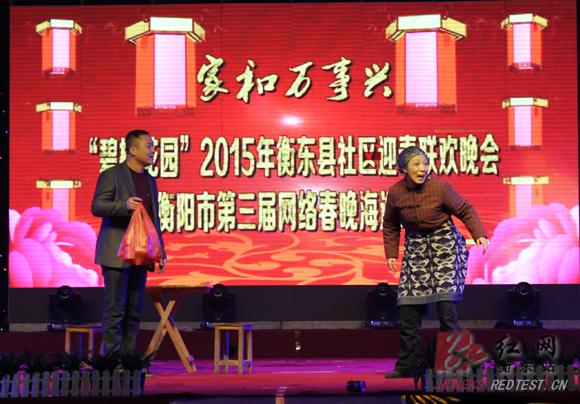红网衡东站1月27日讯(分站记者 周巍 侯云驰)1月25日晚,衡东县举办了2015年社区迎春联欢晚会暨衡阳市第三届网络春晚海选活动,干群两千余人共同观看演出,庆贺新年。
