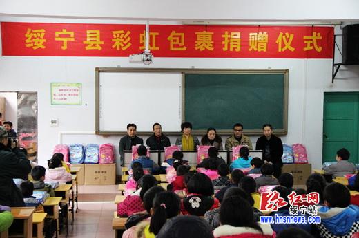 “谢谢叔叔,我一定努力学习,回报社会。”绥宁县长铺镇第一小学三年级留守儿童小志接过装满温暖的彩虹包裹高兴地说。当日,活动方在该校共发放爱心包裹176个,为176名贫困留守儿童送上了冬日温暖。包裹里面漂亮的书包、崭新的儿童书籍、齐全的文具让孩子们爱不释手。