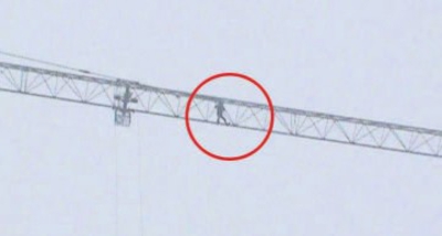 可任凭肖建凡等人如何劝说,两人就是不肯下来。这时,围观的群众越来越多,意料之外的事情发生了:李某平与李某华兵分两路,前者爬到塔吊吊臂顶端位置,后者则爬回驾驶室,操控吊臂横在早元路上空,又将重达200多公斤的大吊钩放下,悬空在马路的正中间,距地面仅150公分。