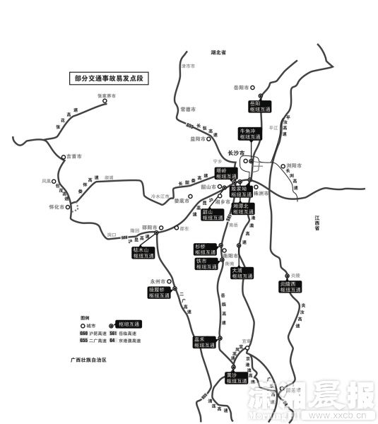 2月3日上午,湖南省公安厅交管局、湖南省高速公路交通警察局同步发布春运安全出行指南,通报湖南高速61处交通事故易发点段,帮广大市民安全、顺利地返乡。